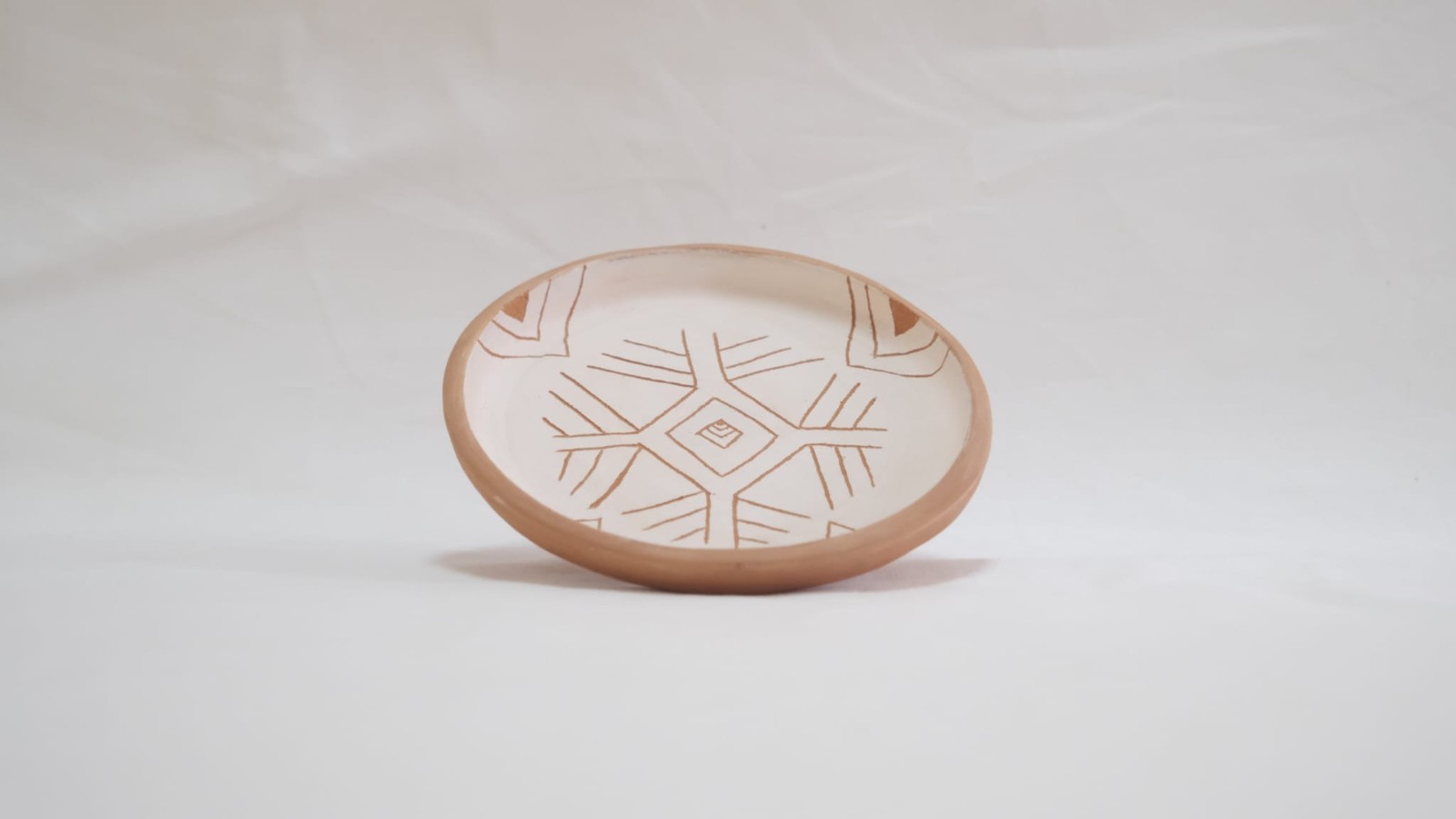 Otantik motiflerle işlenmiş, duvar dekorasyonu için uygun küçük tabak. (15 cm çap)