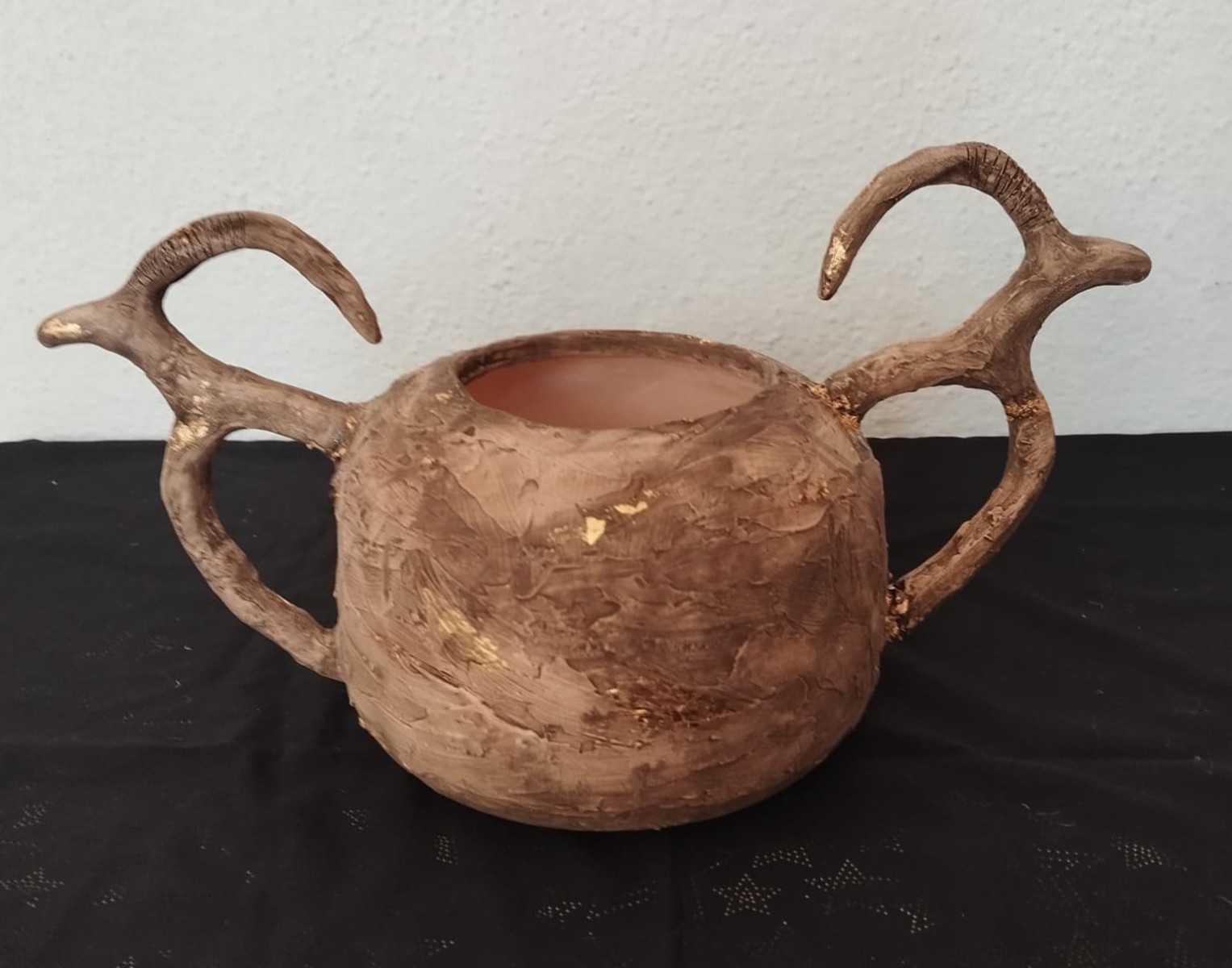 Mekanlara tarihi bir hava katan büyük boy antik keçi figürlü küp. (35x35 cm)