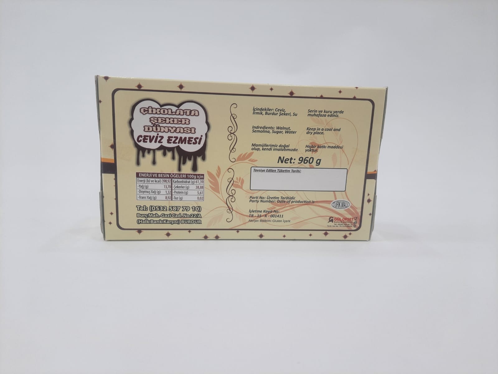 tutacaktır. Bu özellikleri nedeni ile Burdur Ceviz Ezmesi, sağlıklı ve dengeli bir gıda
