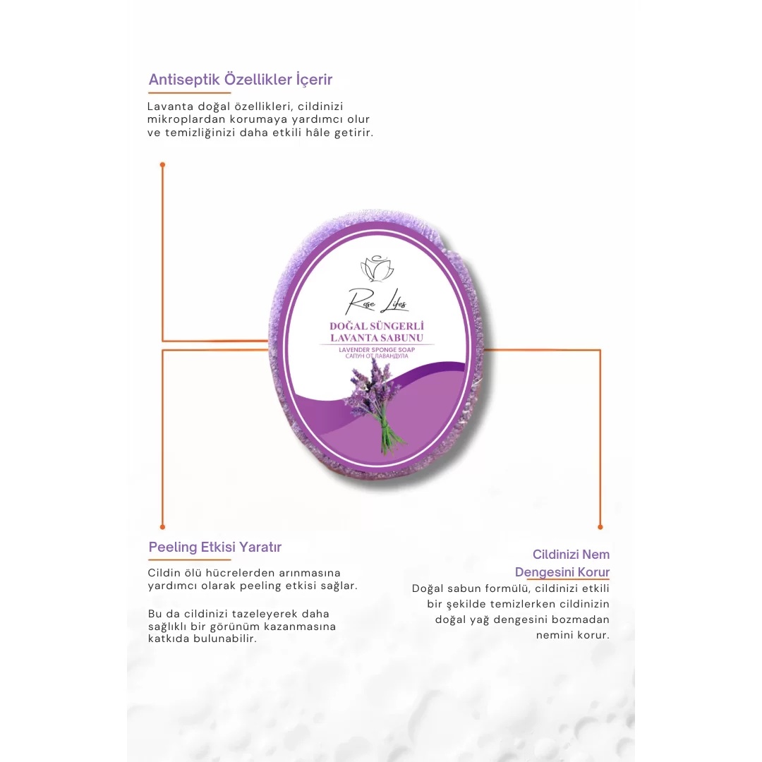 Doğanın rahatlatıcı etkisini duş keyfinize taşıyan Doğal Süngerli Lavanta Sabunu, cildinizi nazikçe temizlerken aynı zamanda yoğun nem desteği sağlar.