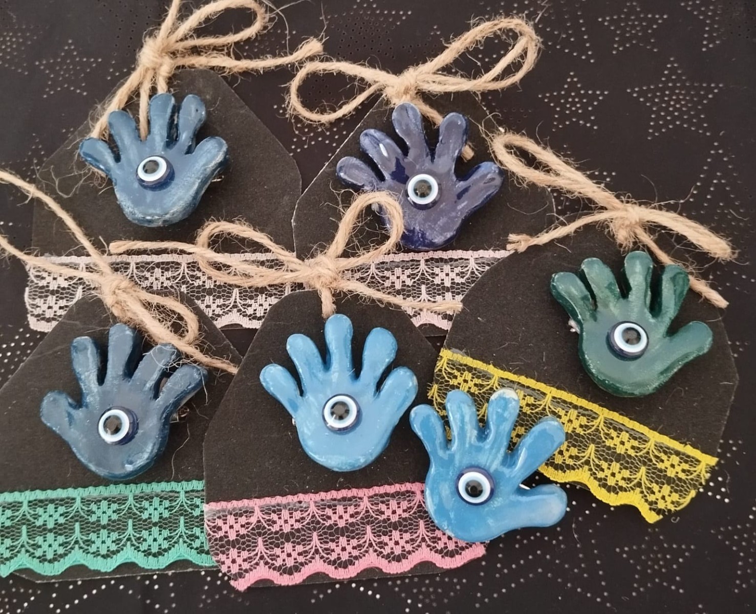 Modern ve minimalist el figürü tasarımlı seramik broş. (3x4 cm)