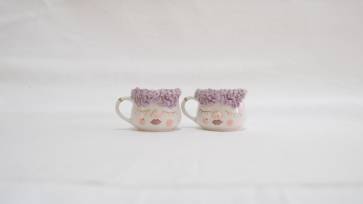 Çiçek Tokalı Kız Figürlü 2'li Seramik Kupa Seti