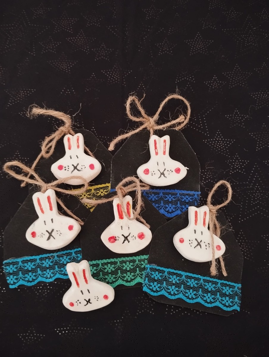 Doğadan esinlenen tavşan figürlü, parlak seramik broş. (3x5 cm)