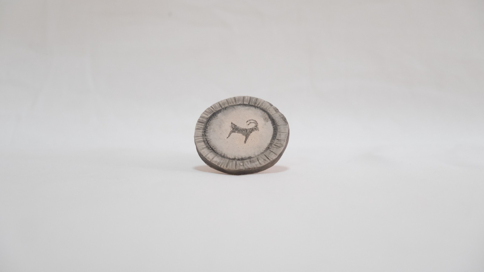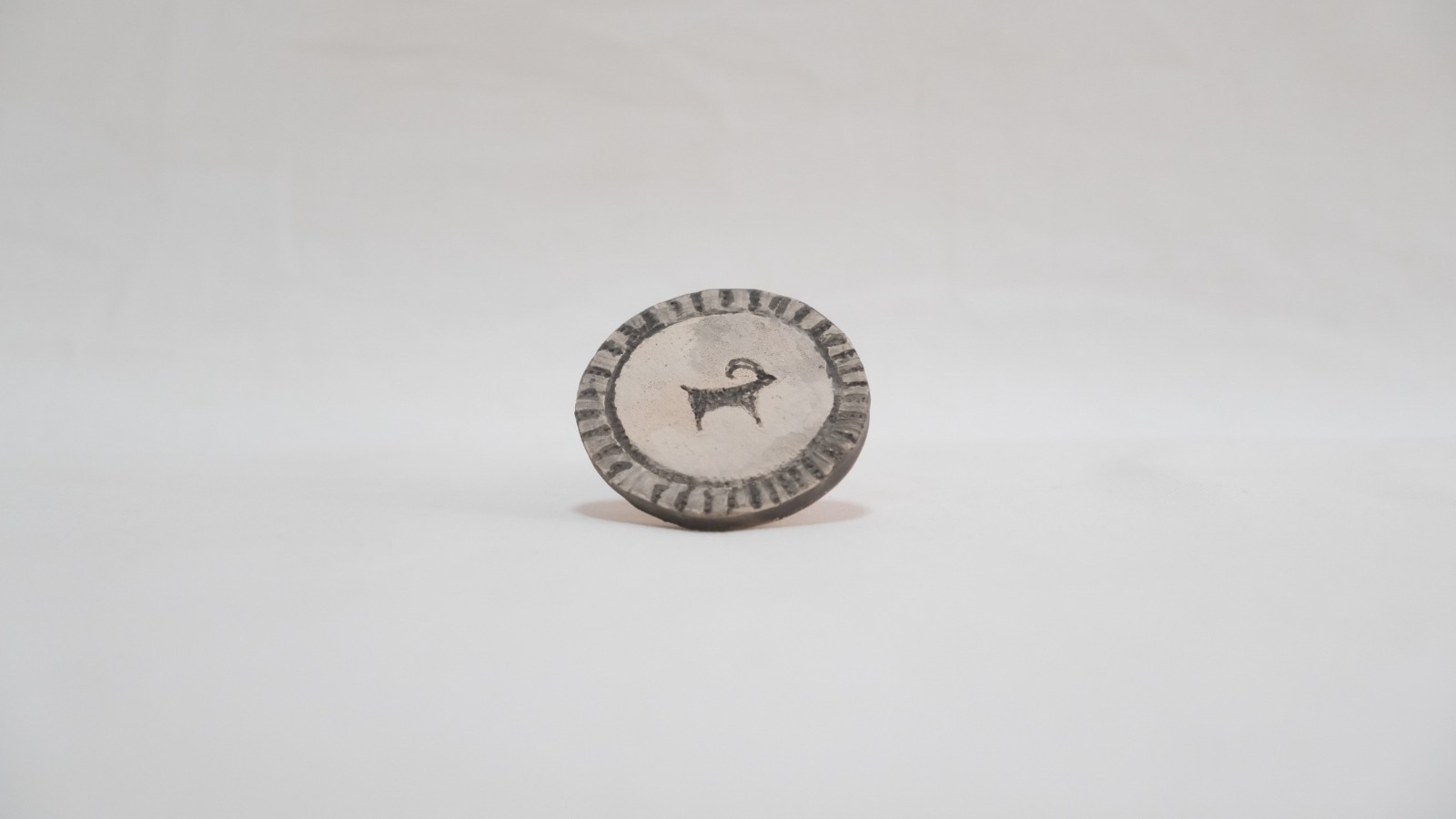 Yöresel Teke deseniyle zenginleştirilmiş yuvarlak seramik koku taşı. (7 cm çap)