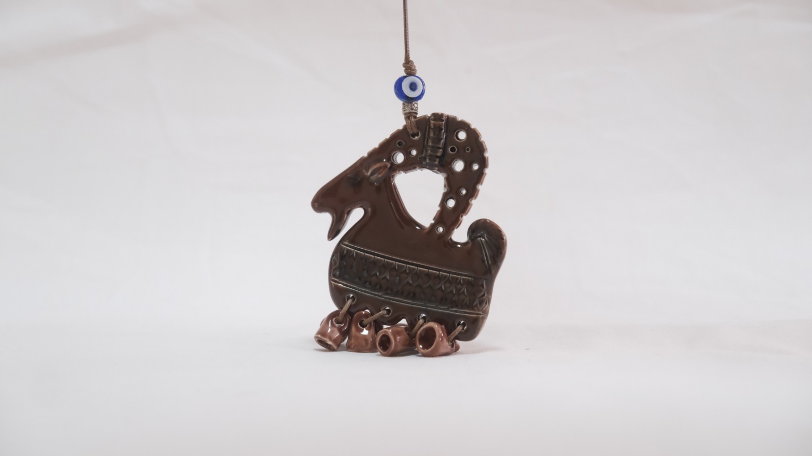 Kahverengi sırlı, Teke yöresi kültürünü yansıtan duvar süsü. (10x10 cm)